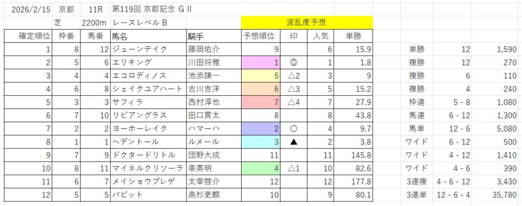 予想順位②ー⑥ー①の決着