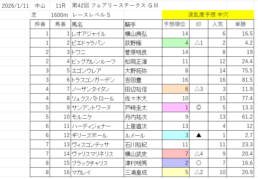 波乱度予想 中穴