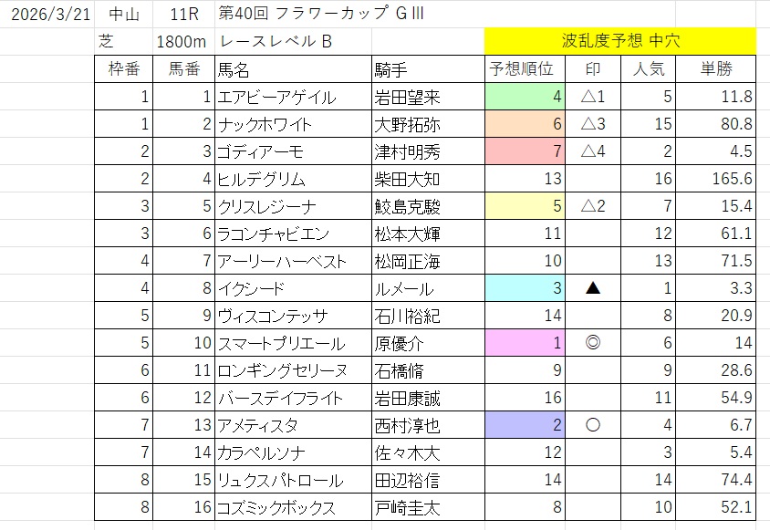 筆者が独自で作成している馬柱です。ダウンロードボタンでダウンロードできます。