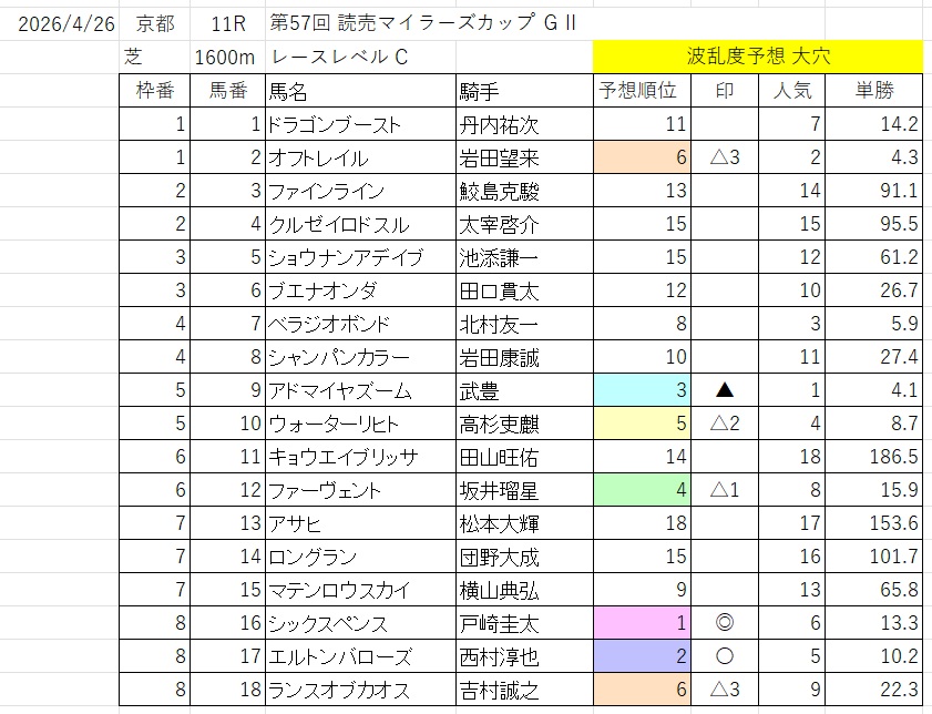 筆者が独自で作成している馬柱です。ダウンロードボタンでダウンロードできます。