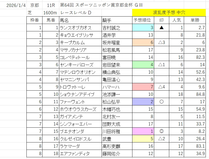 波乱度予想 中穴