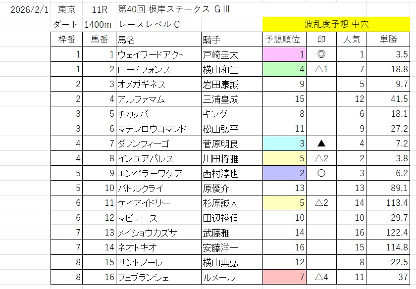波乱度予想 中穴