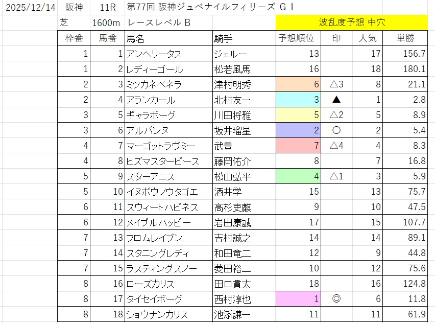 波乱度予想 中穴