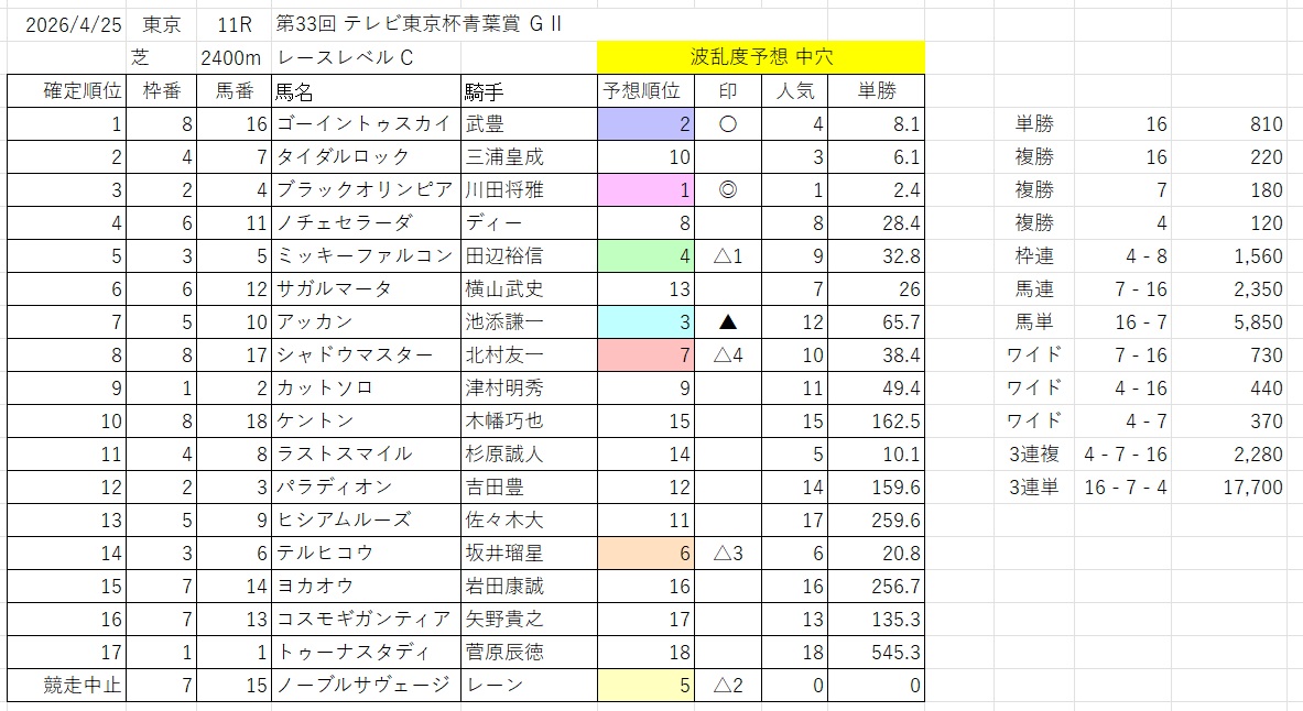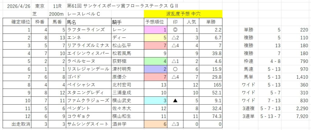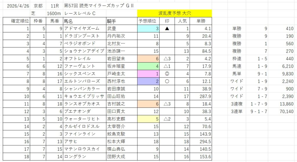 波乱度予想 大穴