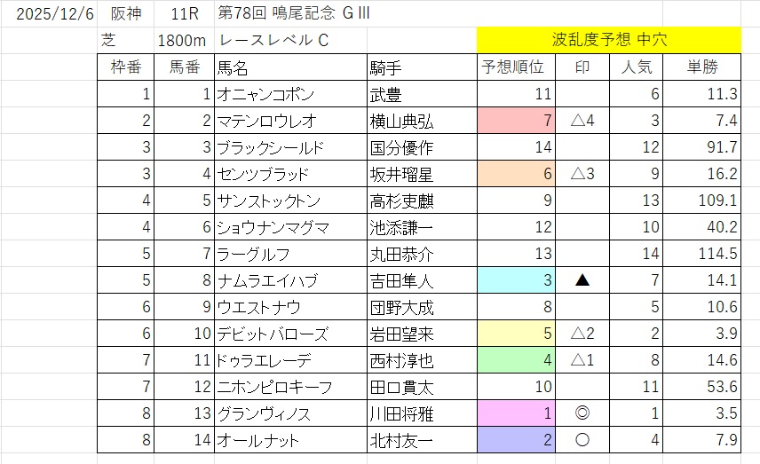筆者が独自で作成している馬柱です。ダウンロードボタンでダウンロードできます。