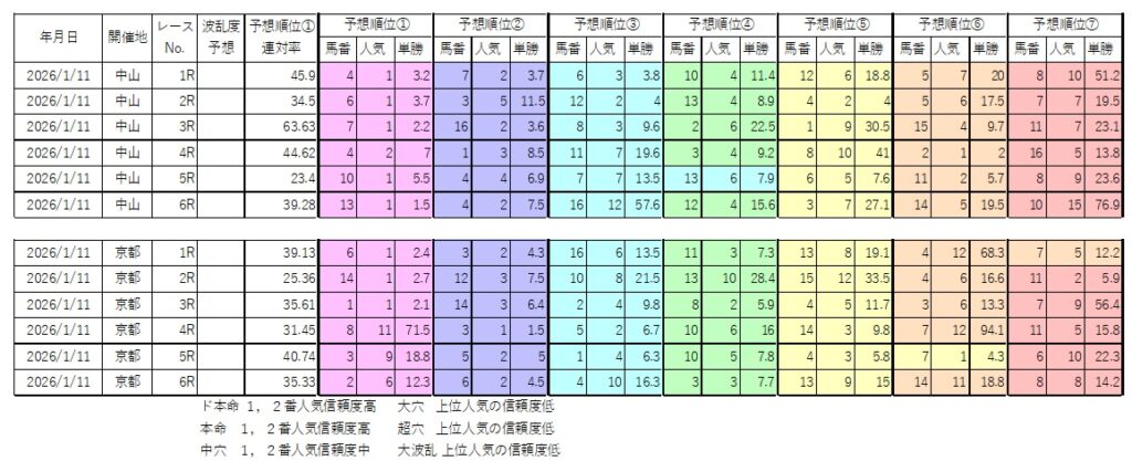 1月11日(日)波乱度予想、予想順位一覧 前半