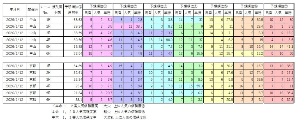 1/12前半 ド本命1レース、大穴2レース、超穴1レース