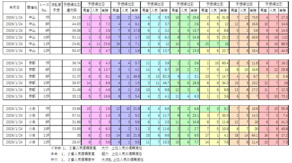 1月24日(土)波乱度予想、予想順位一覧 後半