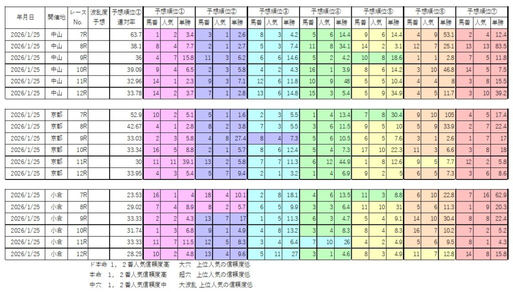 1月25日(日)波乱度予想、予想順位一覧 後半