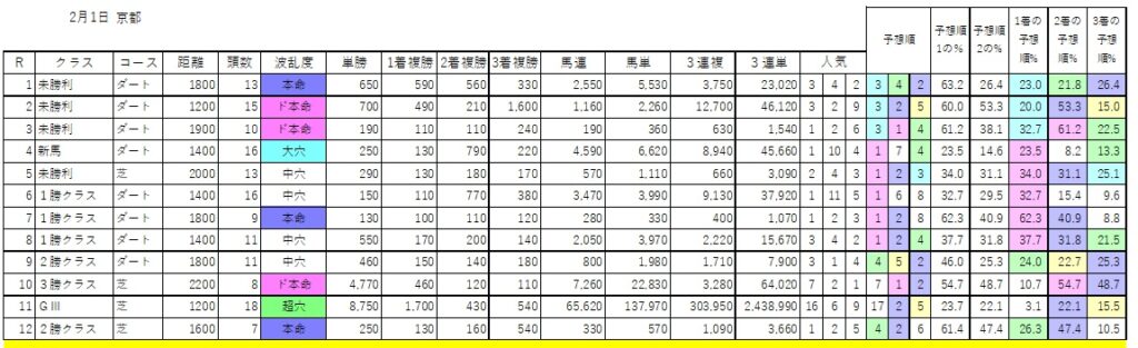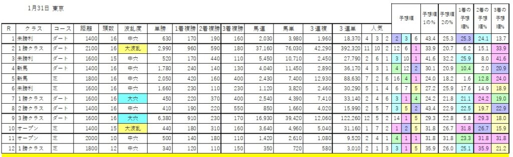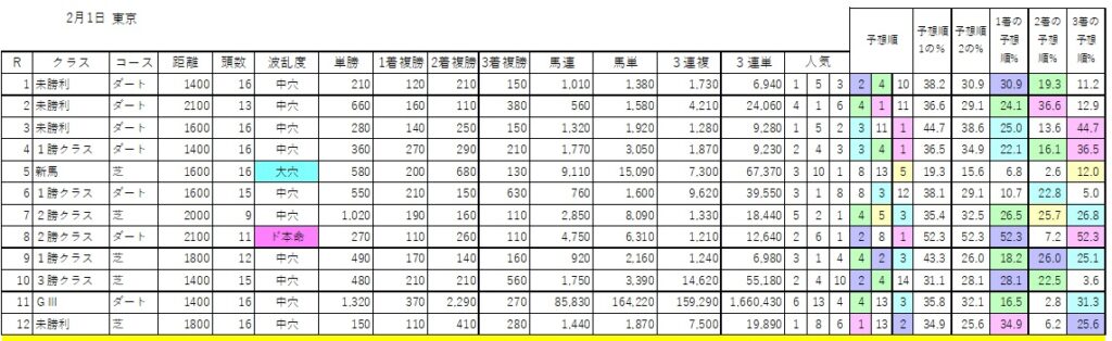 予想順欄は予想順5位以内に色がついています。