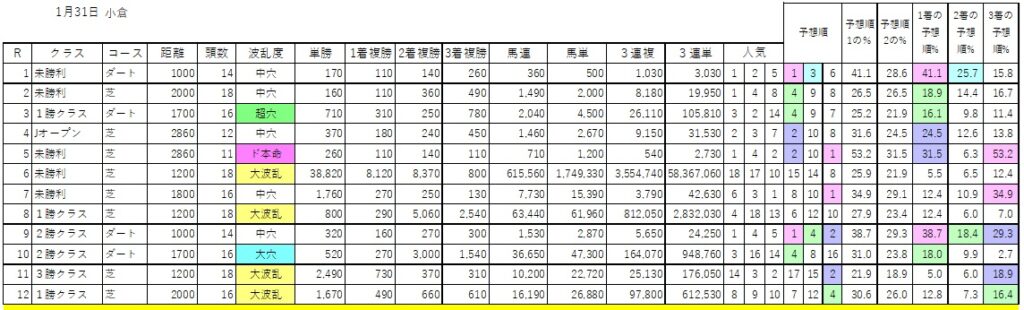 競馬開催日当日に更新(予定)の波乱度予想、予想順位一覧をどうぞ馬券検討にお役立てください。