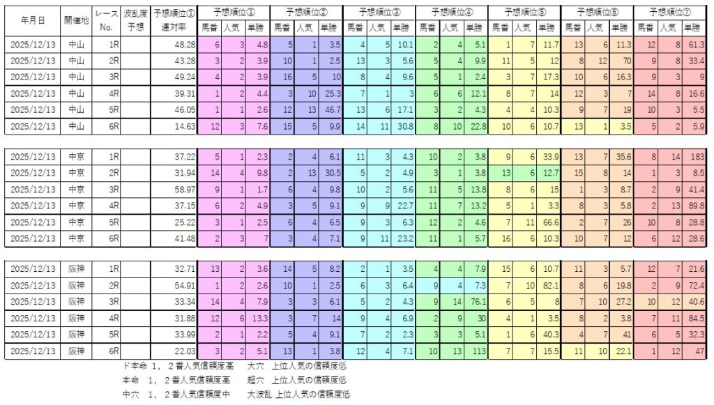 12/13前半 ド本命3レース、本命2レース、大穴2レース、超穴2レース、大波乱1レース