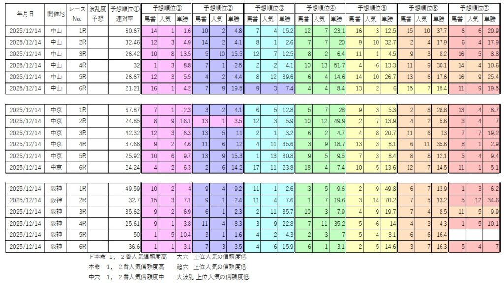 12/14前半 本命4レース、大穴3レース、大波乱2レース