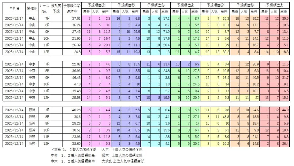 12月14日(日)波乱度予想、予想順位一覧 後半