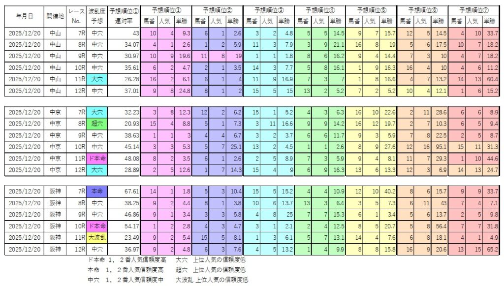 12月20日(土)波乱度予想、予想順位一覧 後半