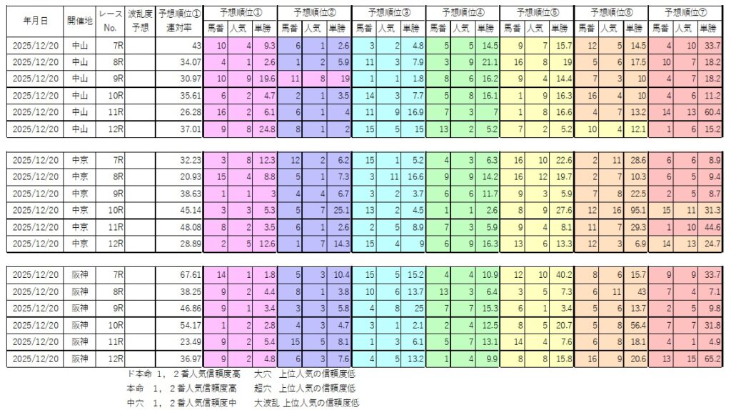12/20後半 ド本命2レース、本命1レース、大穴3レース、超穴1レース、大波乱1レース