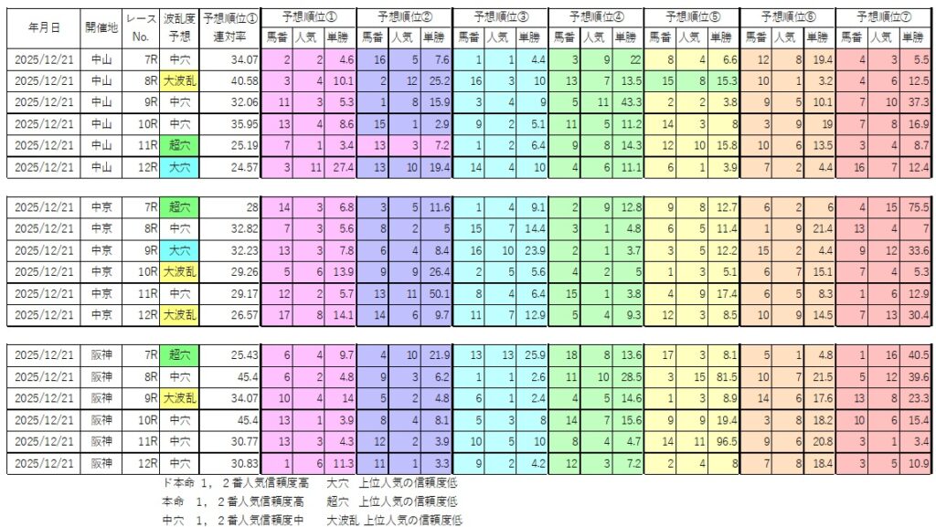 12月21日(日)波乱度予想、予想順位一覧 後半 予想一覧 X Facebook はてブ Pocket LINE コピー 2025.12.212025.12.23 参考になれば幸いです12/21後半 大穴2レース、超穴3レース、大波乱4レース 人気ブログランキングに参加しています。下記バナー「ポチ」っとしてくれると喜びます。 中央競馬ランキングに参加中。クリックしてくれると喜びます。 楽天市場 Amazon.co.jp 【メルカリ】 古いゲーム買取レトログ