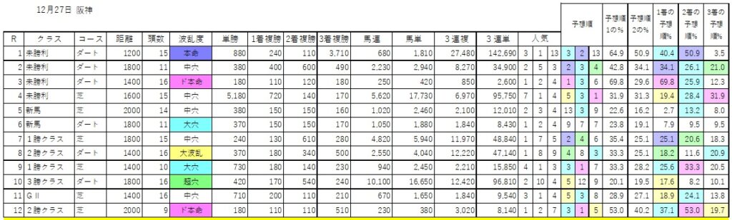 競馬開催日当日に更新(予定)の波乱度予想、予想順位一覧をどうぞ馬券検討にお役立てください。