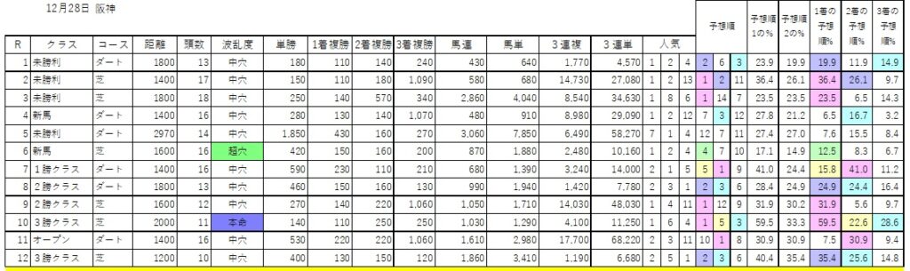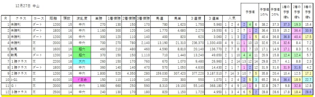 予想順欄は予想順5位以内に色がついています。