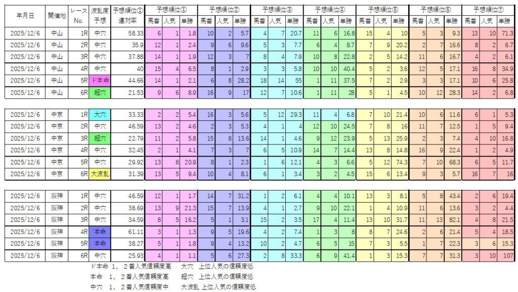 12/6前半 ド本命1レース、本命2レース、大穴1レース、超穴2レース、大波乱1レース