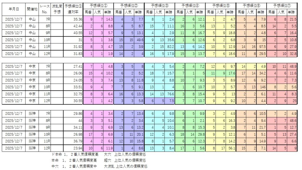 12/7後半 ド本命1レース、超穴3レース、大波乱5レース