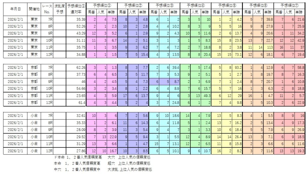 2/1 後半 ド本命2レース、本命2レース、超穴2レース、大波乱2レース