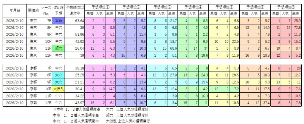 2/10後半 本命1レース、大穴2レース、超穴1レース、大波乱1レース