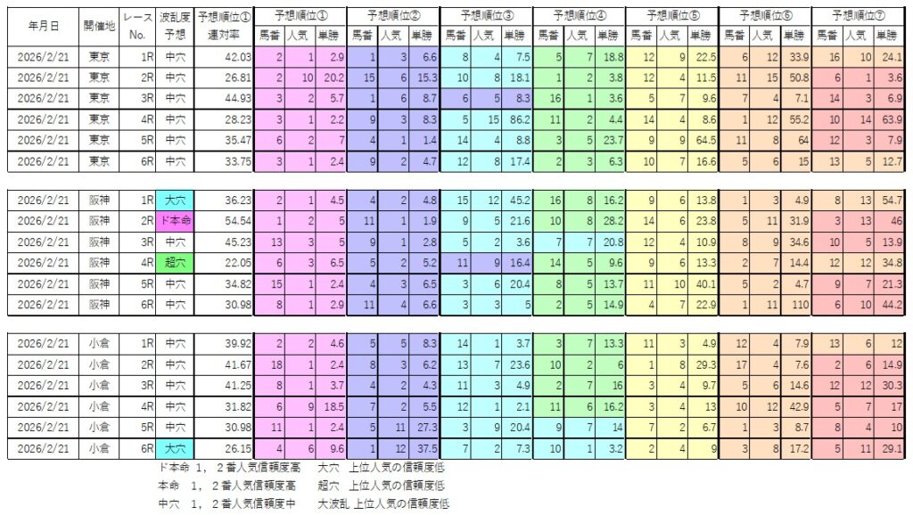 ◎2/21前半 ド本命1レース、大穴2レース、超穴1レース