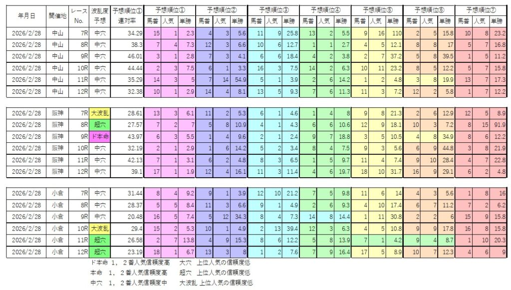◎2/28後半 ド本命1レース、超穴3レ-ス、大波乱2レース
