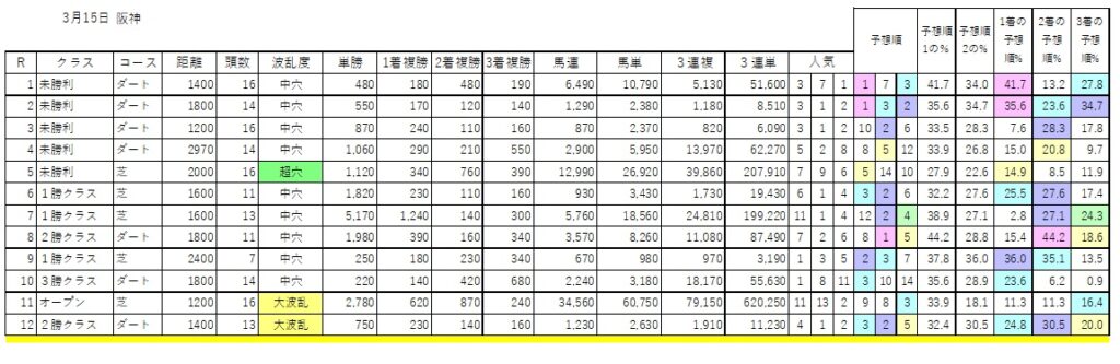 予想順欄は予想順5位以内に色がついています。