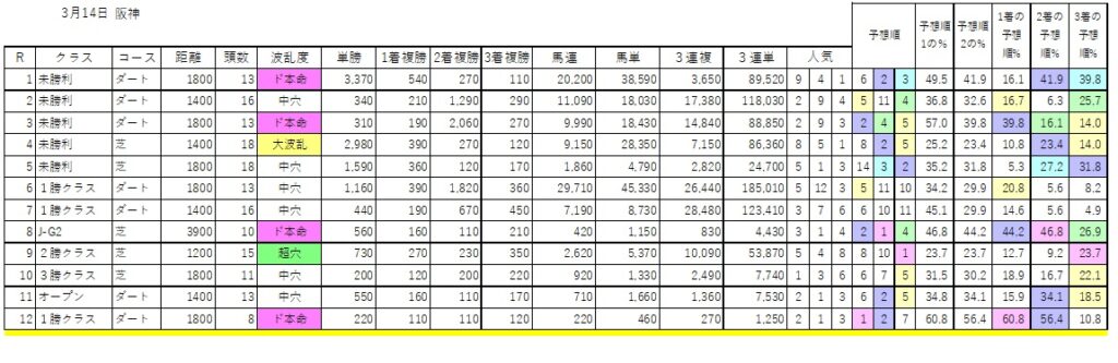 競馬開催日当日に更新(予定)の波乱度予想、予想順位一覧をどうぞ馬券検討にお役立てください。