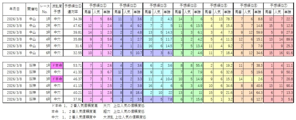 3月8日(日)波乱度予想、予想順位一覧 前半 予想一覧 X Facebook はてブ Pocket LINE コピー 2026.03.08 参考になれば幸いです3/8前半 ド本命2レース 人気ブログランキングに参加しています。下記バナー「ポチ」っとしてくれると喜びます。 中央競馬ランキングに参加中。クリックしてくれると喜びます。 楽天市場 Amazon.co.jp 【メルカリ】 古いゲーム買取レトログ