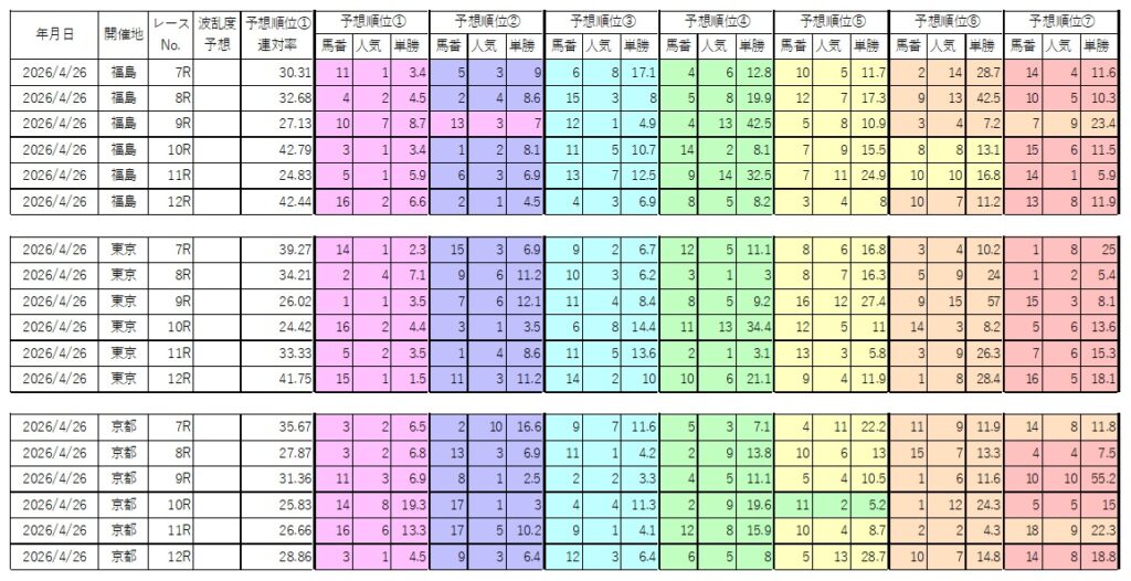 4/26 後半 大穴1レース、超穴3レース、大波乱2レース