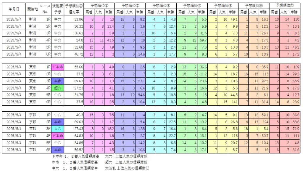 5/4 前半 ド本命2レース、本命3レース、大穴1レース、超穴1レース