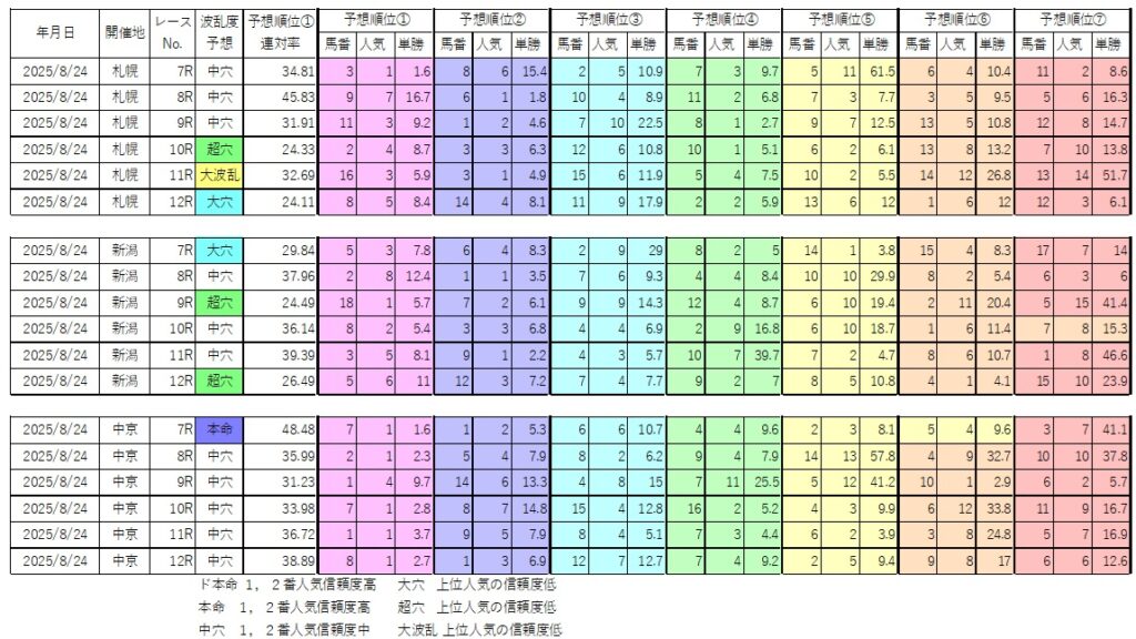 8月24日(日)波乱度予想、予想順位一覧 後半 予想一覧 X Facebook はてブ Pocket LINE コピー 2025.08.242025.08.30 参考になれば幸いです8/24後半 本命1レース、大穴2レース、超穴3レース、大波乱1レース人気ブログランキングに参加しています。下記バナー「ポチ」っとしてくれると喜びます。 中央競馬ランキングに参加中。クリックしてくれると喜びます。 楽天市場 Amazon.co.jp 【メルカリ】 古いゲーム買取レトログ