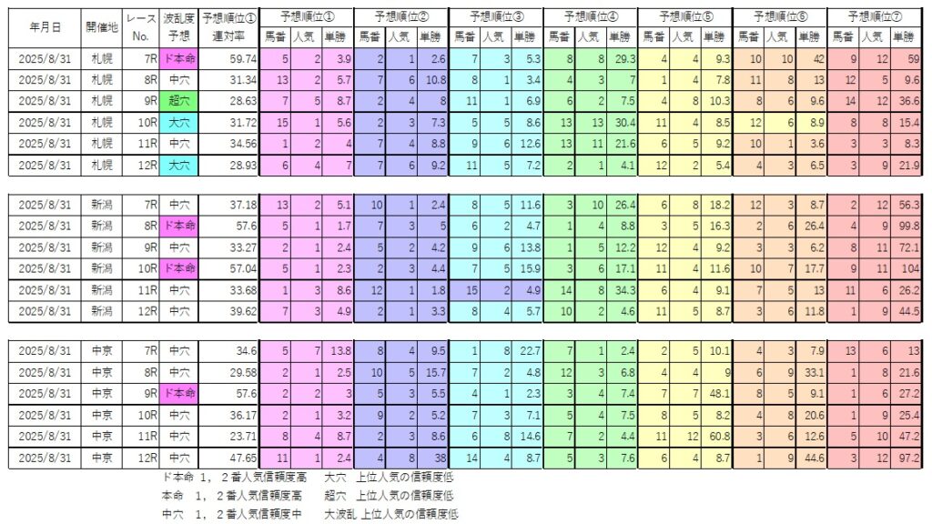 8月31日(日)波乱度予想、予想順位一覧 後半 予想一覧 X Facebook はてブ Pocket LINE コピー 2025.08.312025.09.04 参考になれば幸いです8/31 後半 ド本命4レース、大穴2レース、超穴1レース人気ブログランキングに参加しています。下記バナー「ポチ」っとしてくれると喜びます。 中央競馬ランキングに参加中。クリックしてくれると喜びます。 楽天市場 Amazon.co.jp 【メルカリ】 古いゲーム買取レトログ