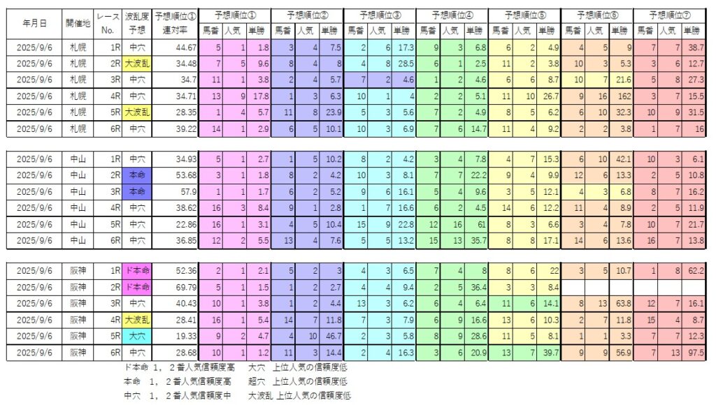 9/6 前半 ド本命2レース、本命2レース、大穴1レース、大波乱2レース