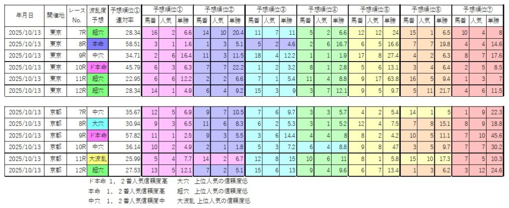 10月13日(月)波乱度予想、予想順位一覧 後半