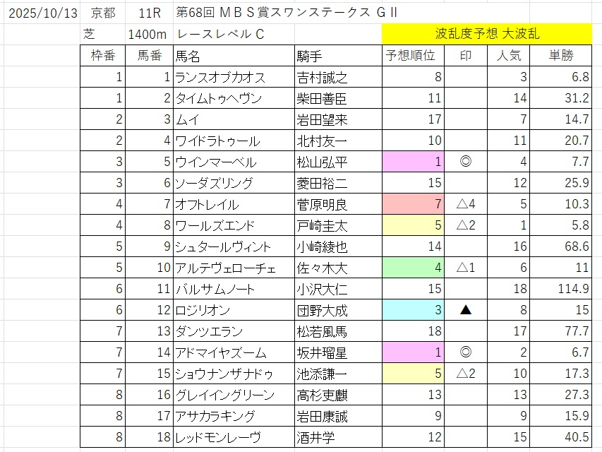 筆者が独自で作成している馬柱です。ダウンロードボタンでダウンロードできます。