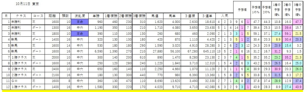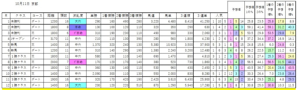 予想順欄は予想順5位以内に色がついています。