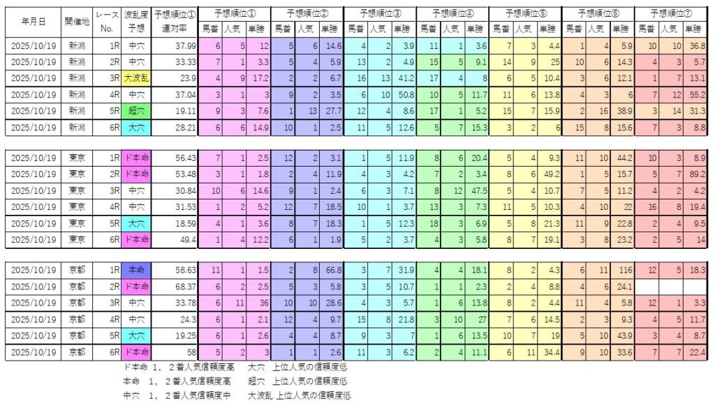 10/19 前半 ド本命5レース、本命1レース、大穴3レース、超穴1レース、大波乱1レース