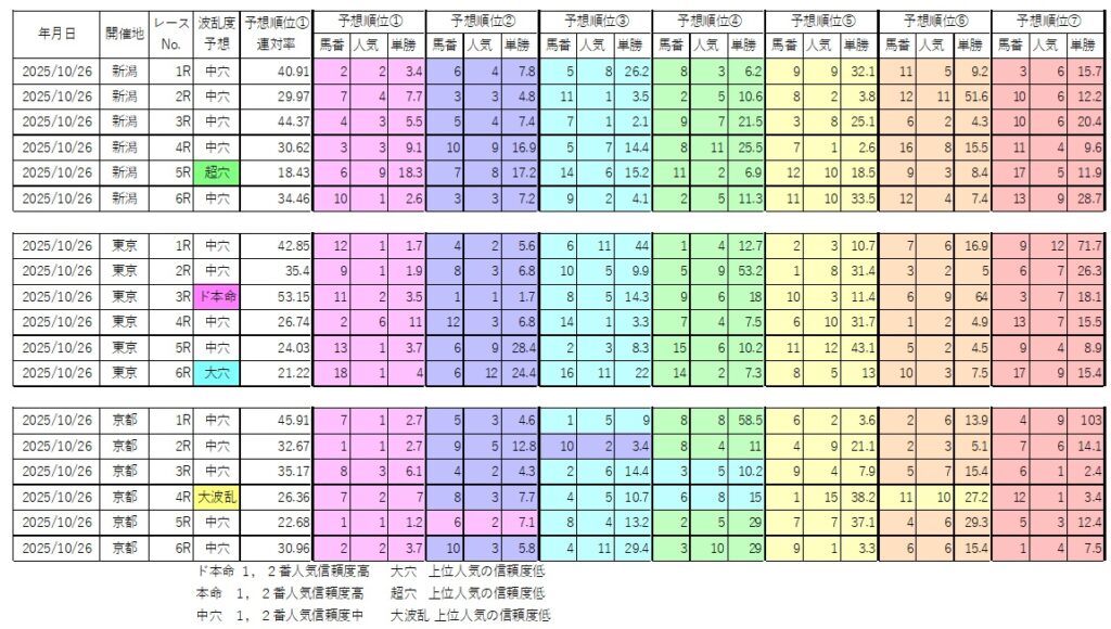 10/26 前半 ド本命1レース、大穴1レース、超穴1レース、大波乱1レース