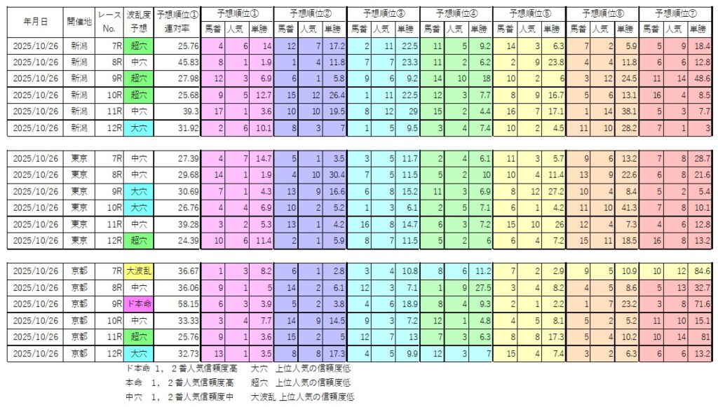 10/26後半 ド本命1レース、大穴4レース、超穴5レース、大波乱1レース