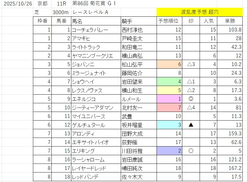 筆者が独自で作成している馬柱です。ダウンロードボタンでダウンロードできます。