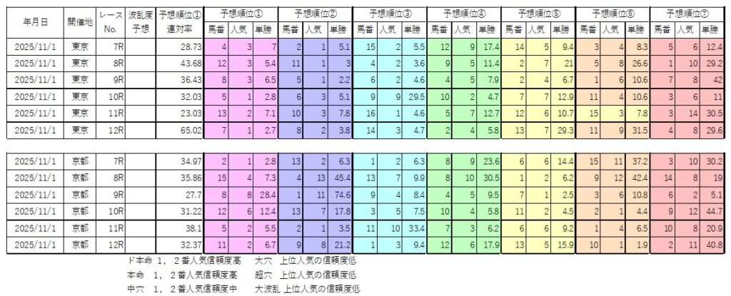 11/1後半 ド本命1レース、超穴1レース、大波乱2レース