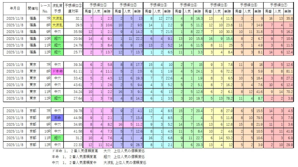 11/8後半 ド本命1レース、本命1レース、超穴5レース、大波乱2レース