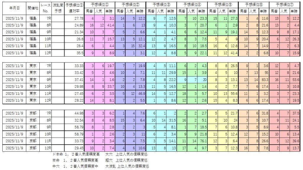 11/9後半 ド本命3レース、大穴2レース、超穴2レース、大波乱2レース