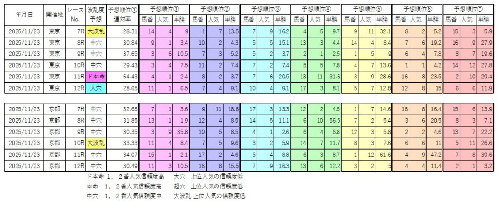 11/23後半 ド本命1レース、大穴1レース、大波乱2レース